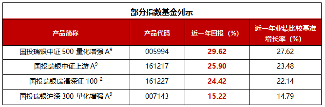 在指数领域的深耕细作,也展现在相关产品的业绩成色上。截至9月30日,国投瑞银中证500量化增强A近一年、近三年回报分别为29.62%、34.55%,成立以来更是实现了166.23%的长期回报,有效跑赢指数的贝塔收益;国投瑞银中证上游A近一年、近三年分别实现了25.90%、50.28%的收益,成立以来累计回报也达86.20%。
