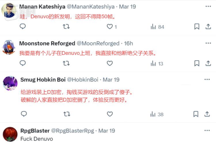 “内鬼”的想法听起来义正辞严,但从相关新闻的评论区不难看出,国内外玩家对这项技术的态度多是消极和:有D加密影响游戏性能的“珠玉在前”,即便Denuvo表示水印技术不会影响游戏质量,国内外玩家依旧担心要由自己的游戏体验来为厂商们的安全措施买单。
