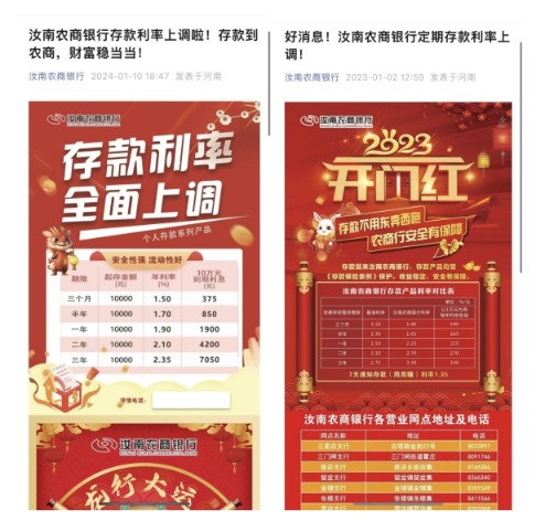 新郑农商银行2024年1月与2023年1月的利率上调公告图源:银行官方微信公众号