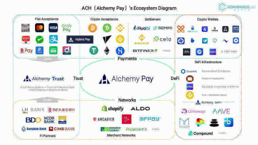 更核心的竞争力在于支付解决方案。由于当前许多主流加密货币区块确认速度较慢,严重影响用户的支付体验,Alchemy Pay则通过区块链网络的适配层,其支付共识协议可以在各种公链无缝部署,并通过使用闪电网络、雷电网络和其他状态通道实现加密货币的快速支付,同时可以实现多种区块链货币的跨链组合支付,反映出该项目过硬的技术实力。