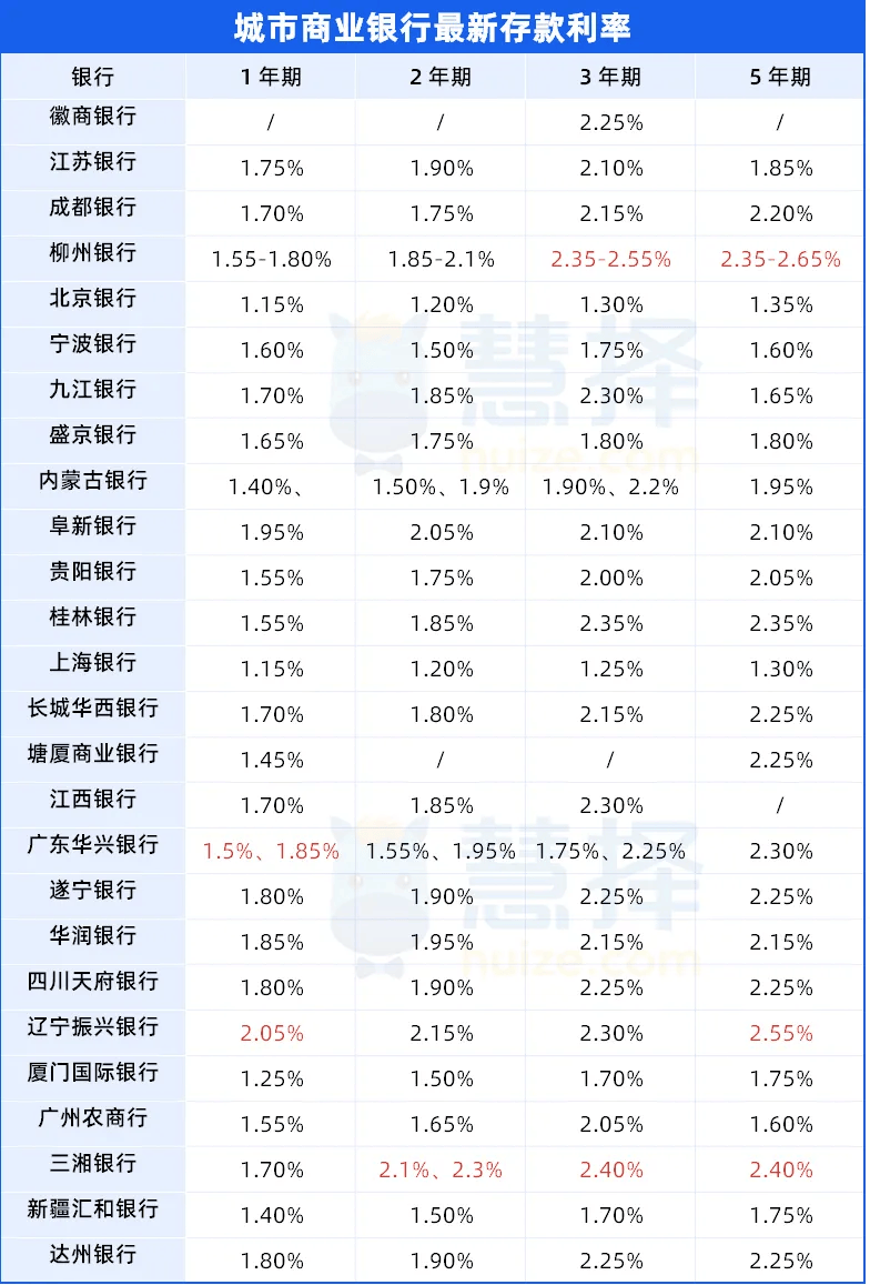 比如三湘银行,3年和5年都是2.40%,辽宁振兴银行,5年期可以做到2.55%。