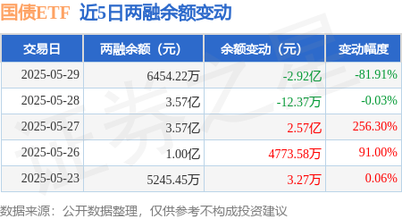 国债ETF:5月29日融资买入92348万元融资融券余额