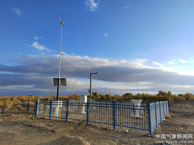 在新疆尔自治区阿勒泰福海乌伦古湖新建的六要素自动气象站新疆尔自治区气象局供图