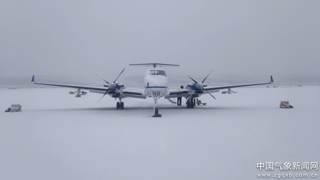 图为技术人员为人工影响天气高性能作业飞机安装Ka波段机载云雷达周万福摄影
