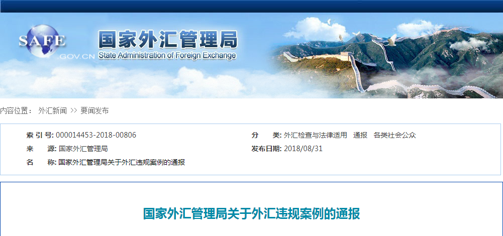 2018年以来,国家外汇管理局深入贯彻落实党的十九大精神和党中央、国务院工作部署,紧紧围绕服务实体经济、防控金融风险、深化金融改革三项任务,加强外汇市场监管,对各类外汇违法违规行为保持高压态势,不断加大处罚力度,严厉打击虚假、欺骗易,维护健康良性外汇市场秩序。