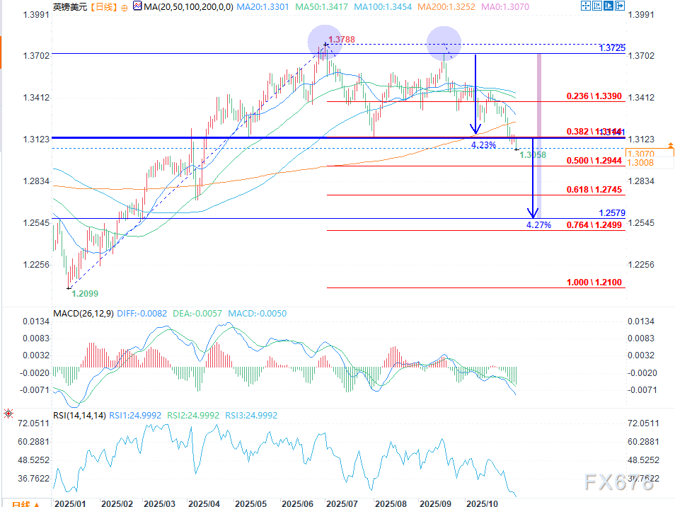 此外,英镑/美元汇率已跌破50日和200日移动平均线,同时也处于云图指标(IchimokuCloud)下方,这些信号进一步支撑了看空观点。