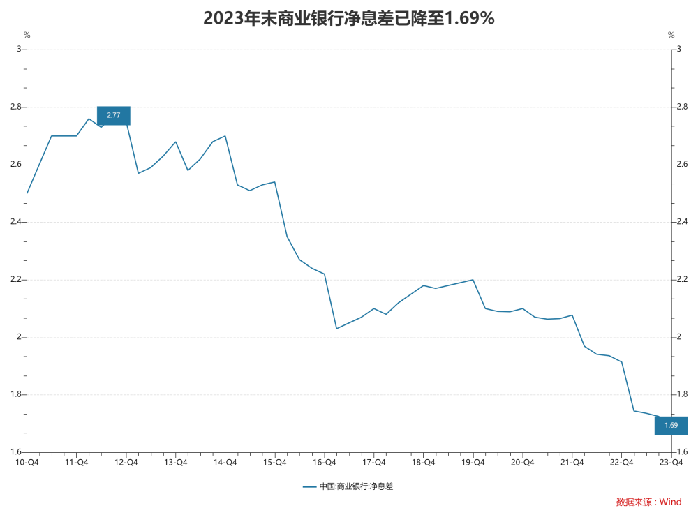 王青认为,2023年末商业银行净息差已降至1.69%,首次跌破1.7%关口,且突破了《合格审慎评估实施办法(2023年修订版)》中自律机制合意净息差1.8%的临界值。